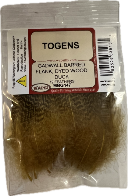 Add natural movement and beautiful mottled barring to your flies with our select Gadwall Barred Flank feathers. Slightly larger and darker than traditional teal flank, these feathers feature long, soft fibers that pulse and breathe in the water — perfect for creating lifelike profiles.